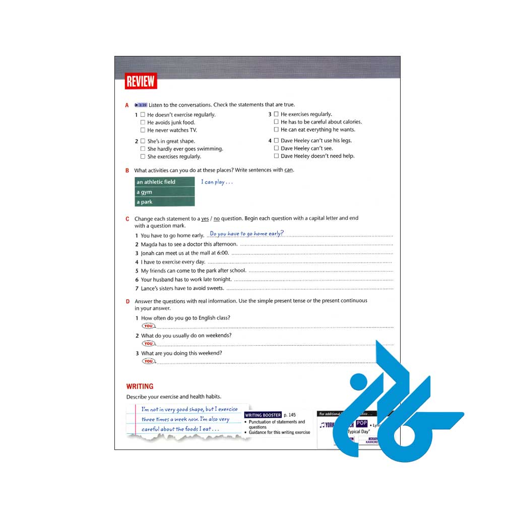 3) دارای کتاب کار: در این بخش زبان آموزان می توانند تمرین های بیشتری را درباره مطالبی که خوانده اند، انجام دهند و خود را مورد بررسی و سنجش بگذارند. لازم به ذکر است که در مجموعه تاپ ناچ، کتاب جداگانه ای بعنوان کتاب کار وجود ندارد و کتاب کار در انتهای کتاب دانش آموز می باشد.