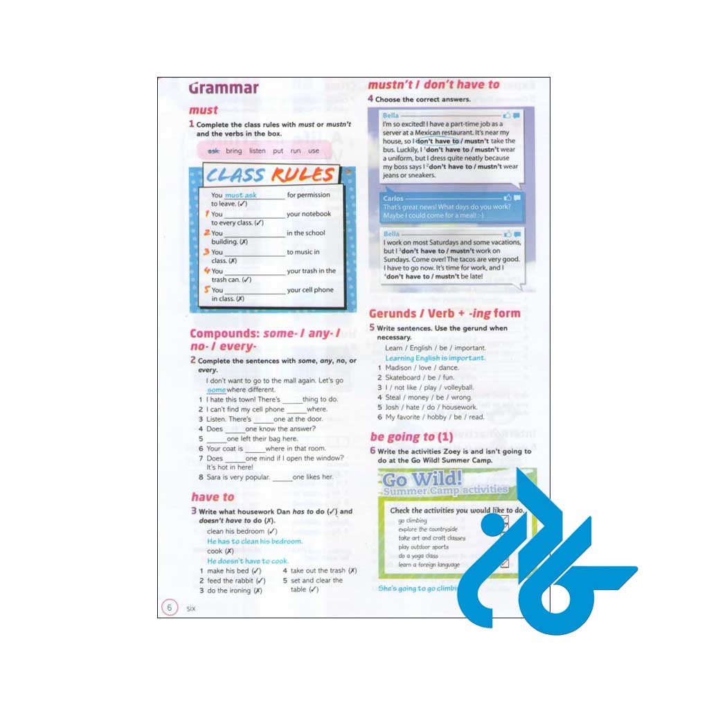 4) برای آموزش بهتر مطالب، تمرینات بسیار متنوعی طراحی شده است که با حل آنها تمامی نکات آموخته شده در ذهن زبان آموز مرور شده و ماندگار خواهد شد.