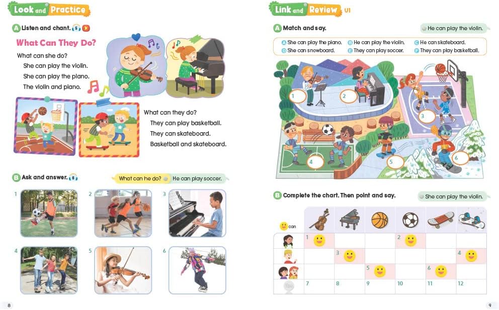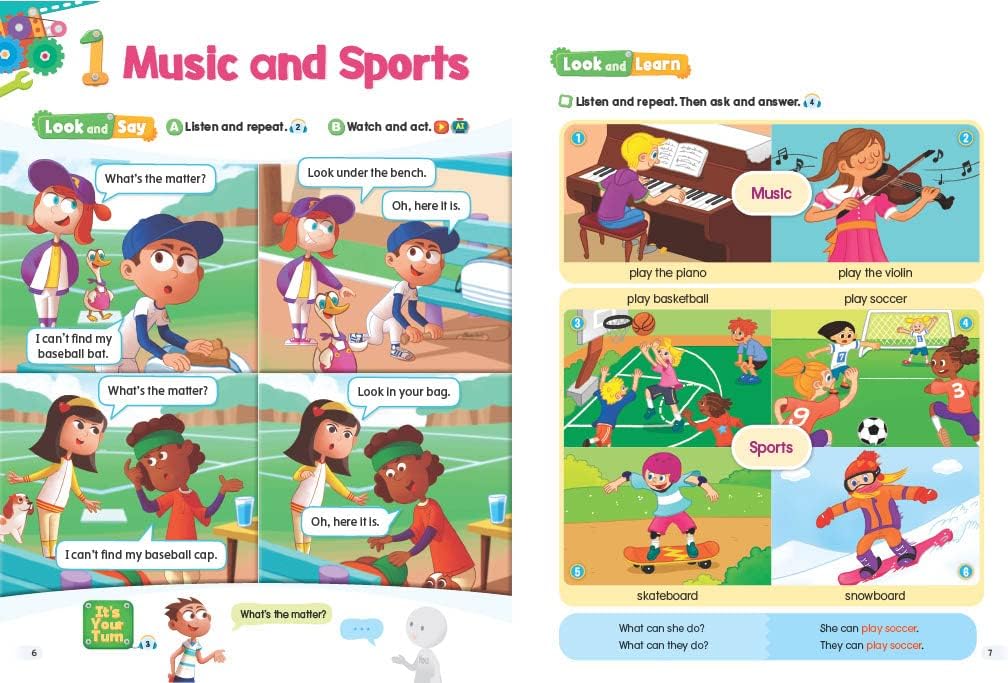 – طراحی رنگی با شخصیت‌های کارتونی، داستان‌های Jump Up، آهنگ‌های آموزشی و تمرین‌های مرور