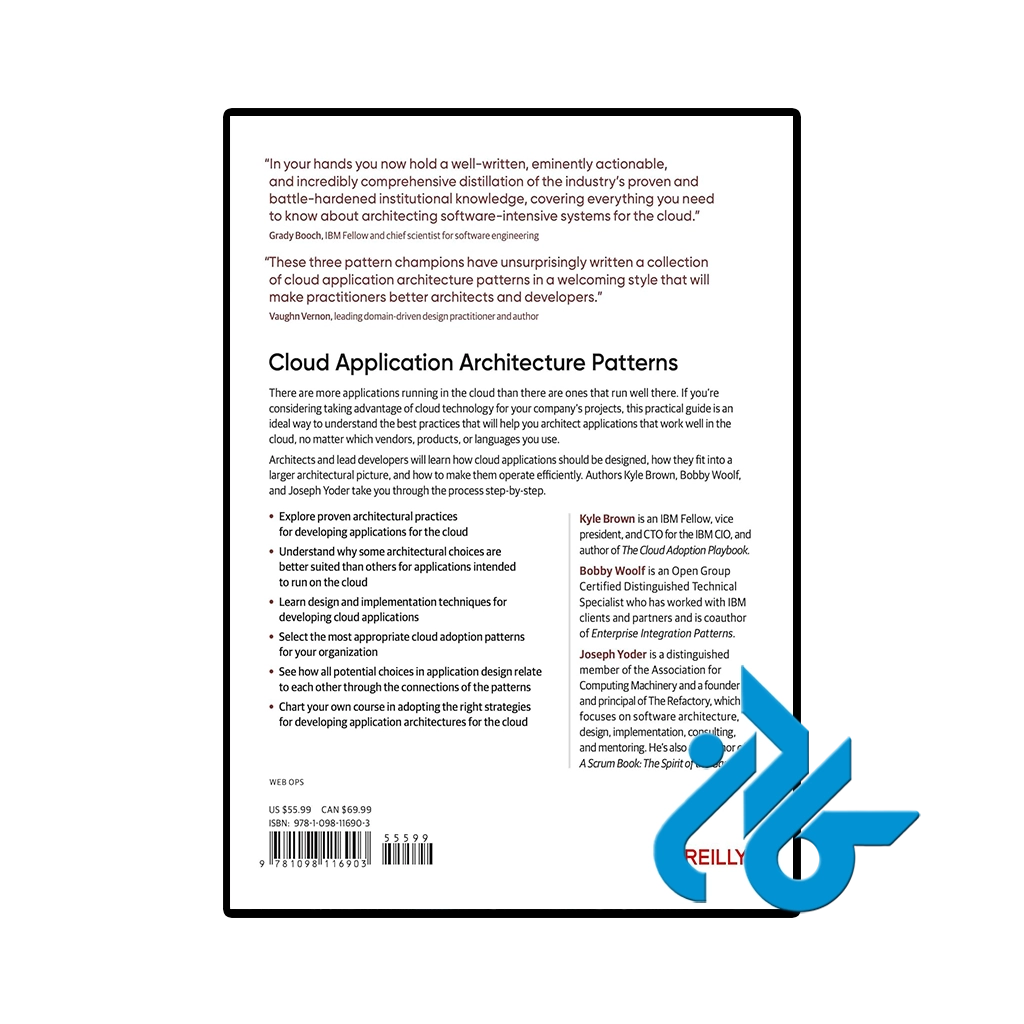 کتاب “Cloud Application Architecture Patterns” نوشتهی کایل براون، بابی وولف و جوزف یودر، به بررسی الگوهای طراحی و معماری برای توسعه برنامههای ابری میپردازد. این کتاب با تمرکز بر روی چالشها و نیازهای خاص برنامههای مبتنی بر ابر، به توسعهدهندگان و معماران نرمافزار ابزارها و رویکردهای عملی ارائه میدهد. نویسندگان در این اثر به تفصیل به بررسی الگوهای مختلفی مانند میکروسرویسها، معماری بدون سرور (Serverless) و روشهای مقیاسپذیری میپردازند و نکات کلیدی را در زمینه طراحی سیستمهای توزیعشده و مقیاسپذیر مطرح میکنند.