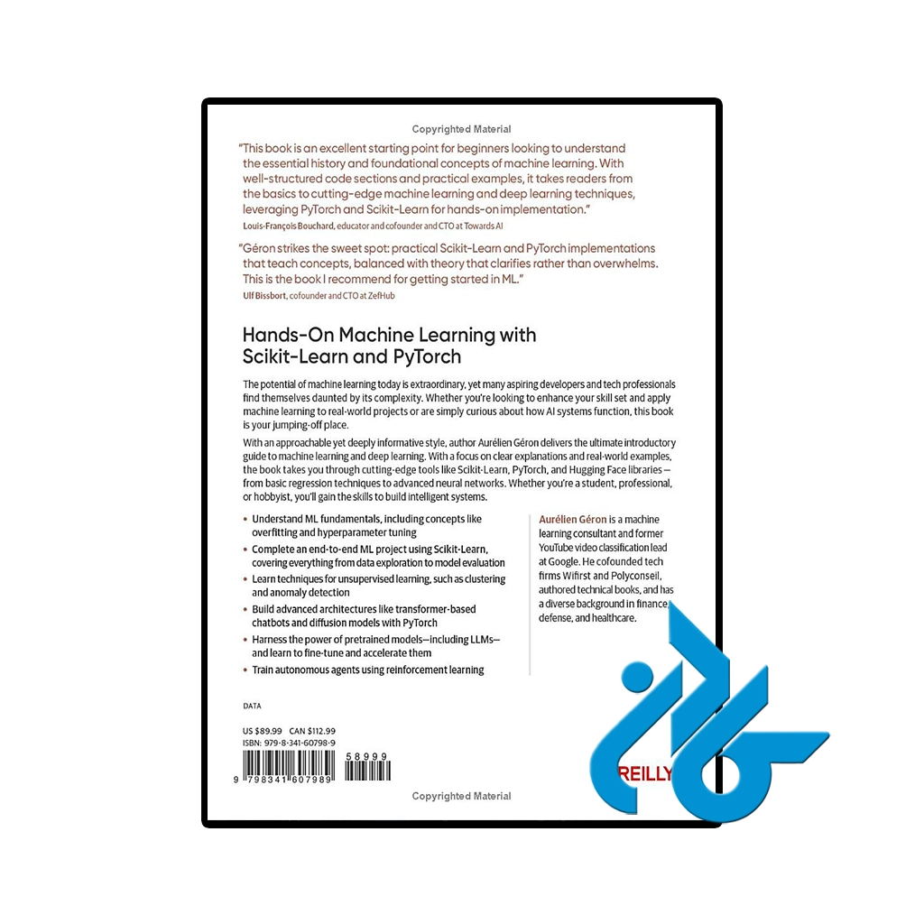 با استفاده از Scikit-Learn و PyTorch، می‌توانی پروژه‌های واقعی را انجام دهی و تجربه عملی کسب کنی. فرقی نمی‌کند تازه‌کار باشی یا کمی تجربه داشته باشی؛ این کتاب به تو کمک می‌کند تا به سرعت در دنیای یادگیری ماشین پیشرفت کنی. پس اگر به دنبال یک منبع کاربردی و مفید هستی، حتماً نگاهی به این کتاب بینداز!
