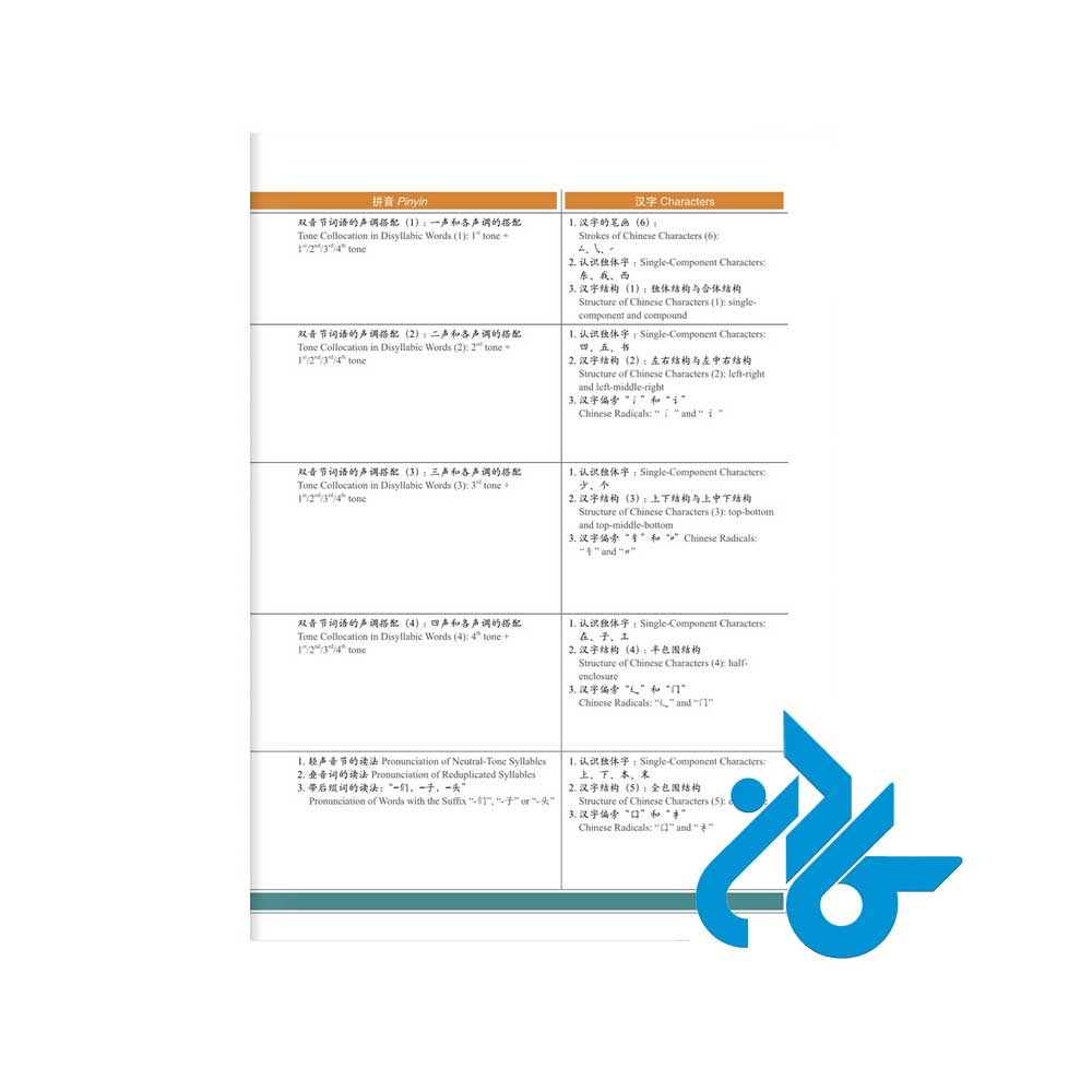 – *واژگان هدف*: آموزش حدود ۱۵۰ واژه‌ی پایه مطابق با استاندارد آزمون HSK 1