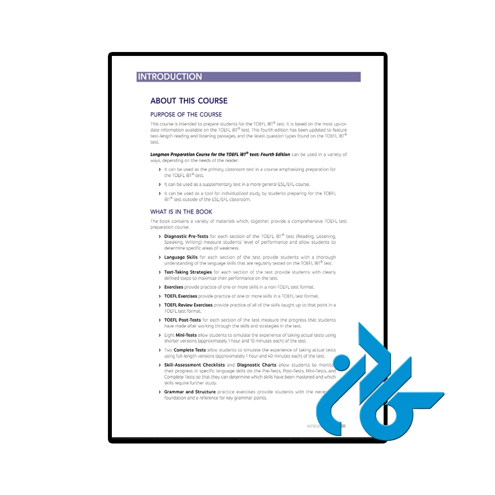 اگه به دنبال یک منبع عالی برای آماده‌سازی برای آزمون TOEFL iBT هستی، کتاب “Longman Preparation Course for the TOEFL IBT” بهترین انتخاب برای توست! این کتاب به صورت کاملاً جامع و کاربردی طراحی شده و به تو کمک می‌کند تا مهارت‌های خواندن، شنیداری، گفتاری و نوشتاری‌ات را تقویت کنی.