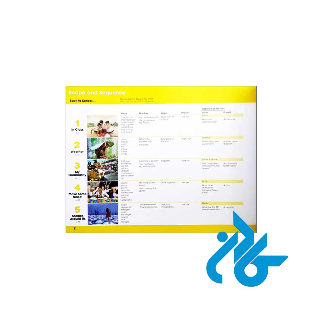 بخش‌های مهم کتاب شامل Songs، Values، Projects، Show and Tell، Story Time، Phonics و Vocabulary Expansion هستند. در بخش Story Time، کودک با داستان‌های کوتاه و ساده آشنا می‌شود که با هدف تقویت Listening و Comprehension طراحی شده‌اند. داستان‌ها همیشه با تصاویر واقعی همراه‌اند تا ارتباط درک شده کودک با زبان در محیط واقعی تقویت شود.