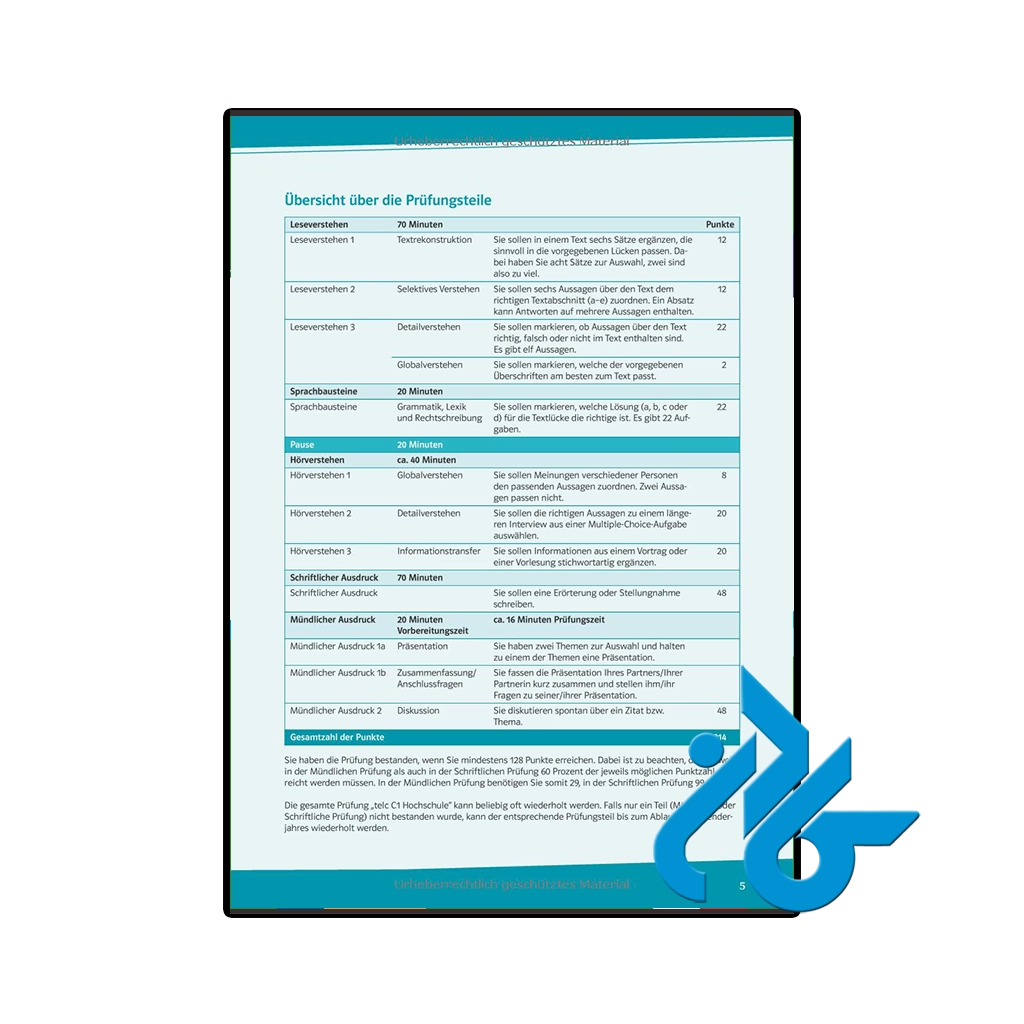 در نتیجه، “Mit Erfolg zu telc C1 Hochschule” یک منبع ارزشمند برای هر کسی است که به دنبال آمادهسازی برای آزمون C1 Hochschule است. با توجه به محتوای تخصصی و تمرینات عملی آن، این کتاب میتواند به دانشآموزان کمک کند تا با اعتماد به نفس بیشتری در آزمون شرکت کنند و شانس موفقیت خود را افزایش دهند. اگر شما هم جزو افرادی هستید که قصد دارید در دانشگاههای آلمانیزبان تحصیل کنید، این کتاب میتواند ابزار مناسبی برای دستیابی به اهداف زبانی شما باشد.