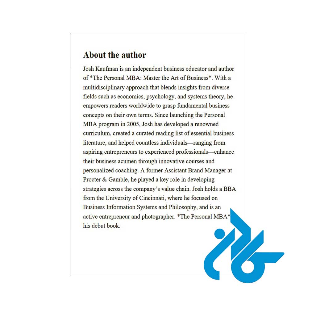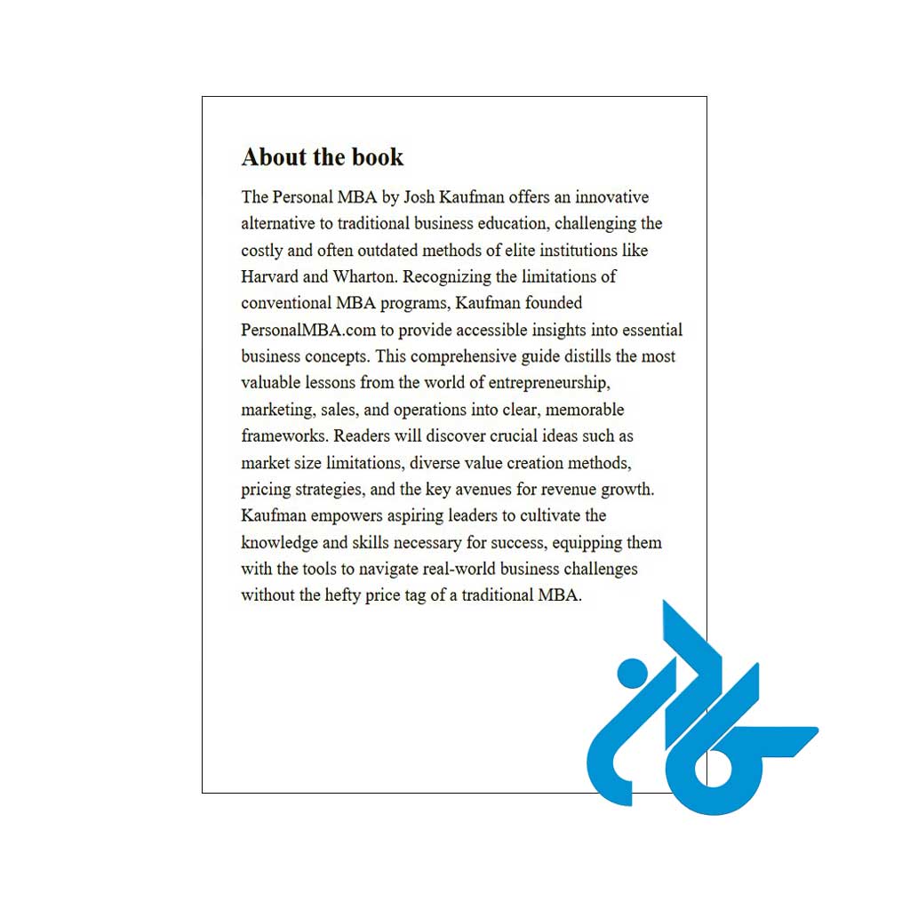 اگر به دنبال یک منبع ساده، کاربردی و کاملاً قابلاجرا برای یادگیری اصول مدیریت و راهاندازی کسبوکار هستید، The Personal MBA اثر جاش کافمن بهترین نقطهٔ شروع است.این کتاب بدون زبان پیچیدهٔ دانشگاهی، به شما یاد میدهد چگونه ایده بسازید، مشتری جذب کنید، فروش داشته باشید و کسبوکاری سودآور و پایدار ایجاد کنید.