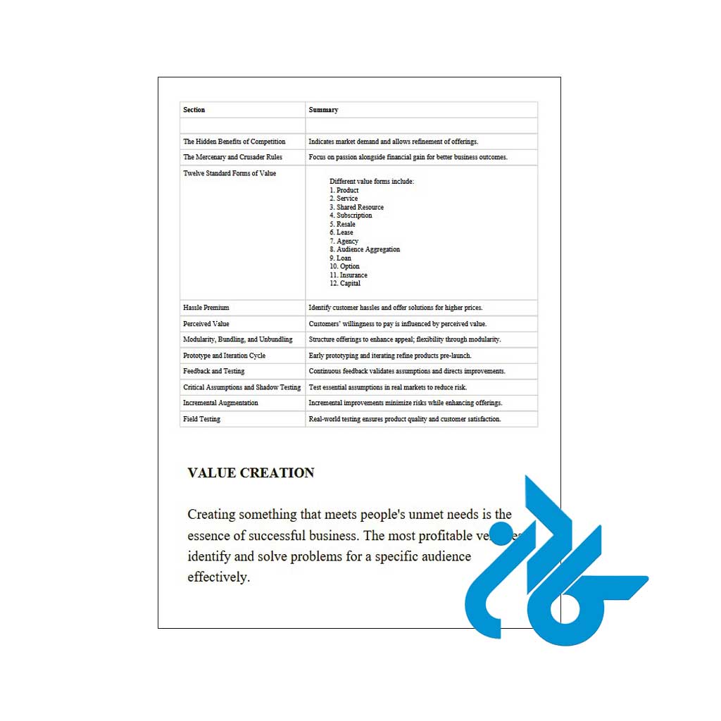 کافمن ساختار ارزش، نیاز مشتری، طراحی محصول، و اعتبارسنجی ایده را کاملاً کاربردی بررسی میکند.